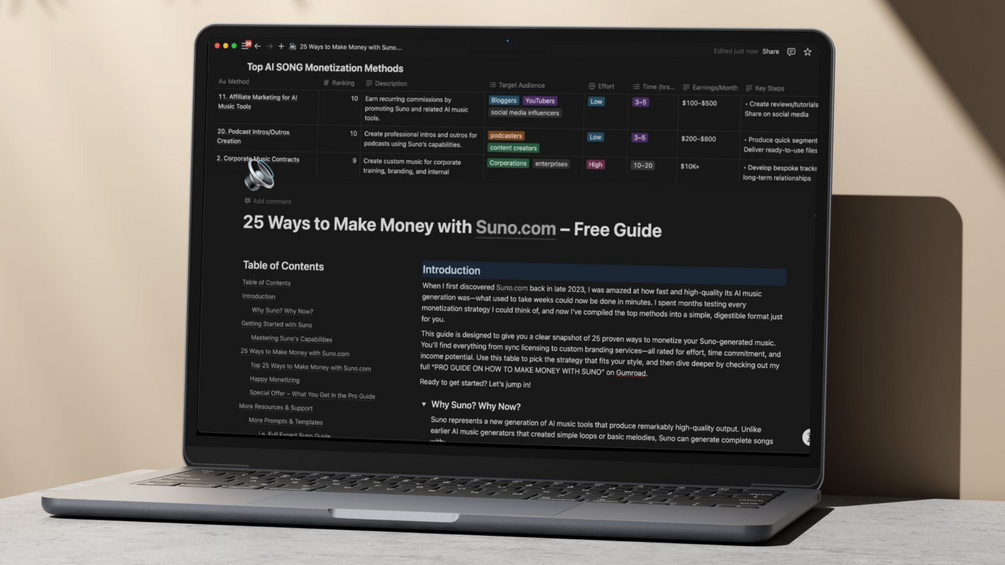 In this FREE 25 Ways to Make Money with Suno.com Guide, you’ll discover: