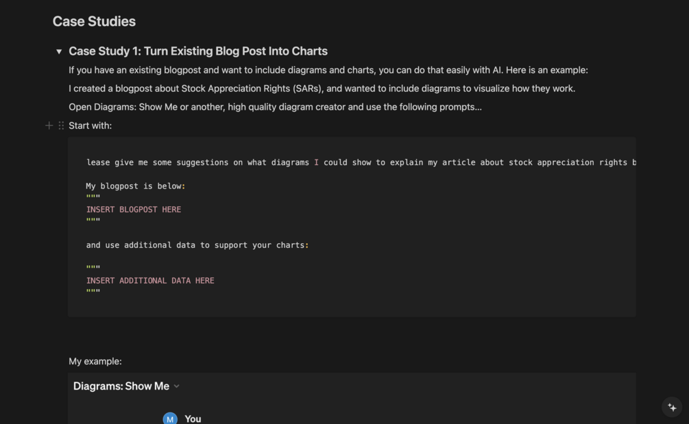 - A comprehensive list of over 115 tested prompts for creating various types of diagrams.