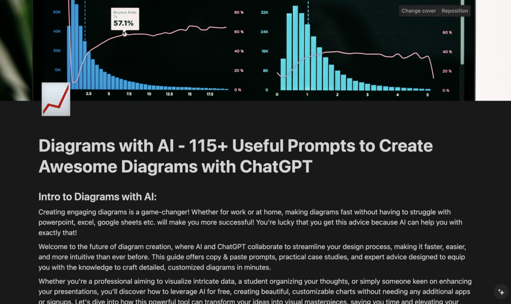 Imagine transforming raw data into stunning visuals that speak volumes. Whether you're a student, professional, or hobbyist, our guide, "115+ Useful Prompts for Diagram Creation with AI", is your gateway to mastering the art of diagram creation using the advanced capabilities of AI like ChatGPT. Enhance your presentations, reports, and projects with visuals that not only convey information but also captivate your audience.