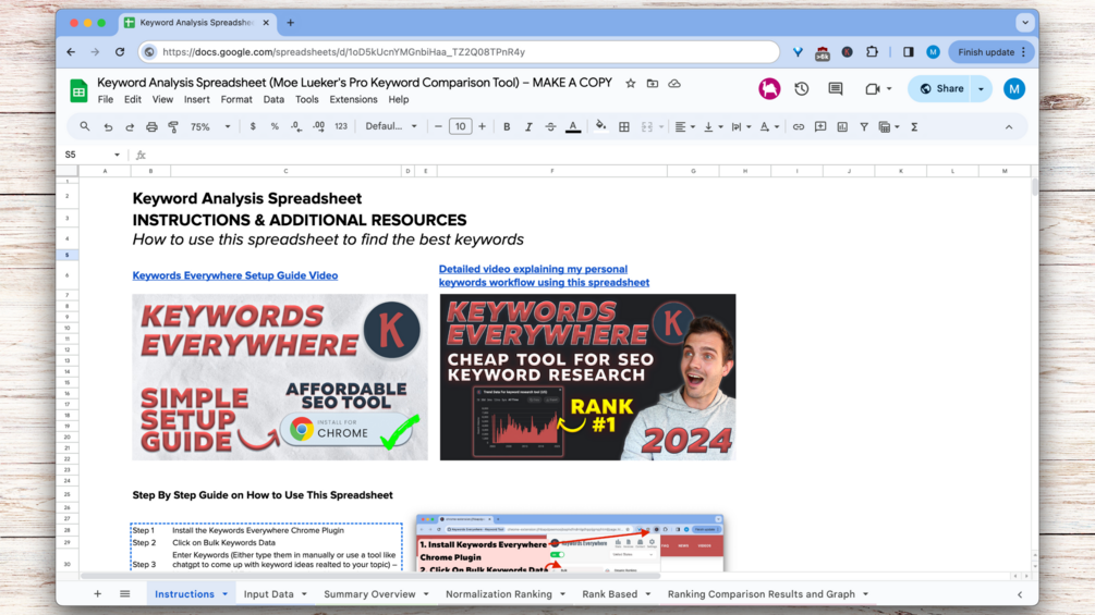 - Tutorial Video: A step-by-step guide on how to maximize the use of your spreadsheet and integrate it with Keywords Everywhere.