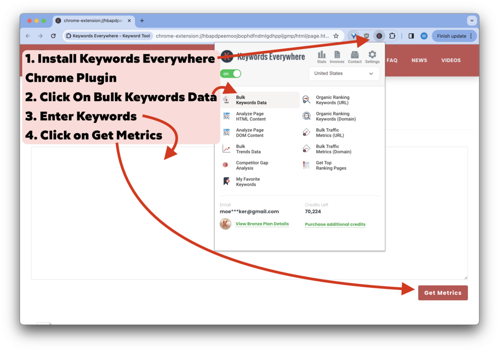 - Integration with Keywords Everywhere: Designed to leverage the power of one of the most effective SEO tools available. (Keywords Everywhere is one of the most affordable keywords research tools that costs less than $2/month – I am not affiliated with them, just like their product)