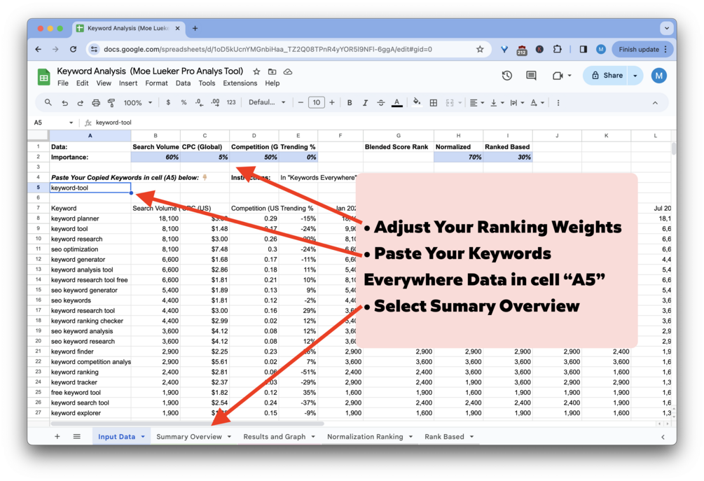 - Easy-to-Use Interface: Simply paste your keyword data and let the spreadsheet do the heavy lifting.