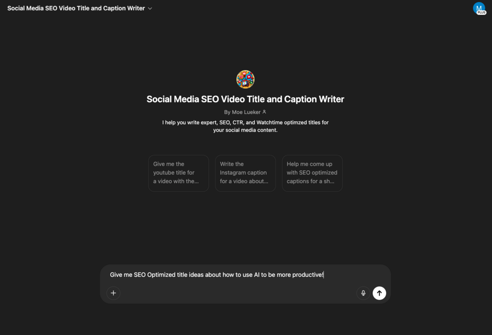 Social Media SEO Video Title and Caption Writer (Custom GPT that writes Youtube Short, TikTok, and Instagram Reel SEO Titles)